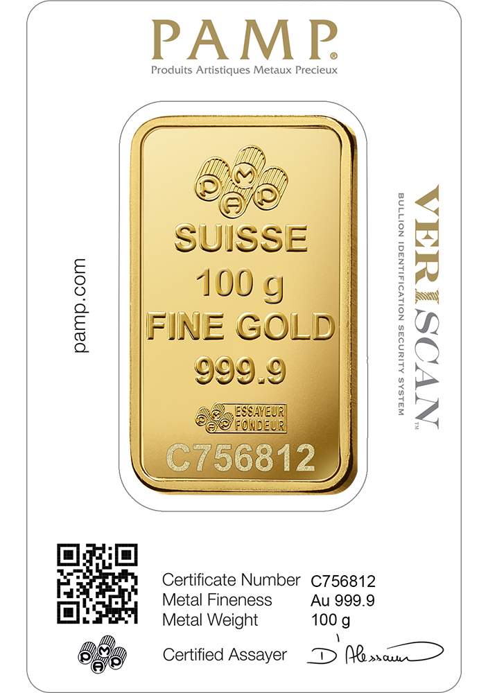 / 100 gram Gold Bar – PAMP Fortuna (Carded)