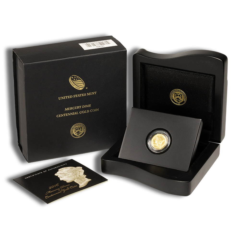 / 2016-W 1/10 oz Gold Mercury Dime Centennial Coin w/OGP